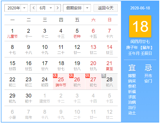 值此端午节来临之际,根据《自治区人民政府办公厅关于2020年部分节假日安排的通知》 我司将于2020年6月25日至27日放假,共3天。6月28日(星期日)正常上班。